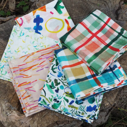 水彩画で描いたイラストからオリジナルテキスタイルを製作し、